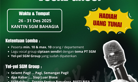 Tahun Baru, Semangat Baru karena Torang PASTI BISA Menutup tahun 2025, PT Sumber Graha Maluku menghadirkan suasana berbeda di lingkungan kerja, khususnya di Kantin SGM Bahagia, Falsabisahaya. Dengan membawa tema “Tahun Baru, Semangat Baru karena... Lebih Lanjut